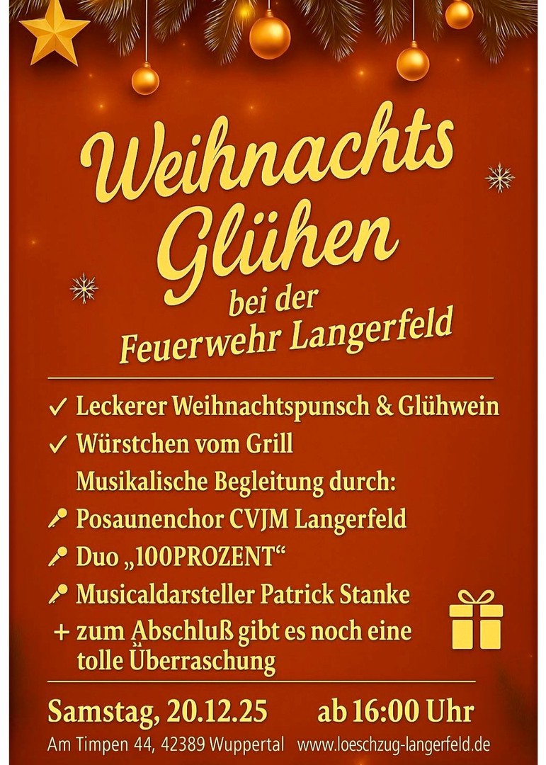 Am Samstag, 17.12.22 von 16.00h bis 20.00h freuen wir uns, Sie wieder bei Glühwein und Bratwurst zu unserem gemeinsamen Weihnachtssingen in unserer Feuerwache, Am Timpen 44, zu begrüßen. Neben